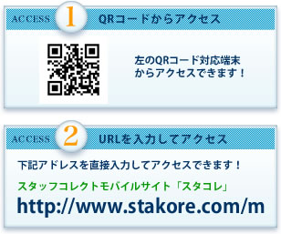 スタッフコレクトモバイルサイトは、外出先から最新のお仕事情報を探したり、お申し込みいただくこともできます。